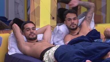 No entanto, a conversa logo mudou de tom quando João Pedro saiu do banheiro e trouxe à tona uma questão mais delicada: o relacionamento com as sisters Eva e Renata. "Vamos conversar com a Renata hoje e deixar resolvido esse trem porque se não tiver resolvido nós vamos vazar. Eu estou chateado demais", desabafou João Pedro.