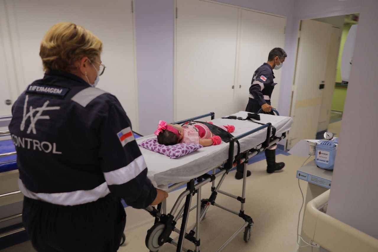 As duas crianças fazem o uso da traqueostomia e gastrostomia, tornando-as aptas a receber assistência domiciliar, conforme a necessidade avaliada pela equipe médica do Programa Melhor em Casa. O pediatra Magno Santana, que irá acompanhar as crianças, destacou os cuidados necessários a partir da desospitalização e os equipamentos ofertados pelo programa para continuidade do tratamento em casa.