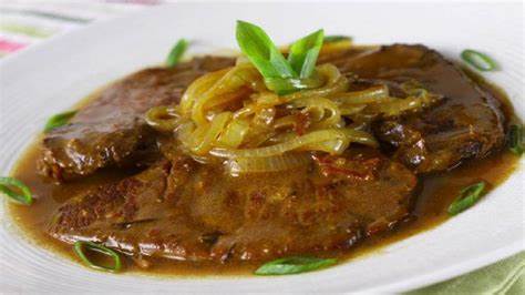 Retire do fogo e deixe sair a pressão naturalmente. Disponha os bifes e o molho numa travessa para servir.