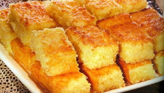 O bolo de macaxeira tem uma textura impressionante e fica perfeito quando combinado com coco ralado.