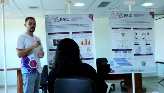 A qualidade de vida de pacientes com câncer colorretal foi um dos assuntos das defesas finais da 14ª Jornada Científica do Programa de Apoio à Iniciação Científica (Paic) – edição 2024-2025, da Fundação Centro de Controle de Oncologia do Estado do Amazonas (FCecon), órgão vinculado à Secretaria de Estado de Saúde (SES-AM). Ao todo, são 65 projetos de pesquisa com defesas entre terça (05/08) e esta quinta-feira, 07/08.