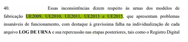 Os modelos em questão são máquinas fabricadas antes de 2020. O Terra teve acesso ao pedido e verificou que as urnas são dos modelos UE2009, UE2010, UE2011, UE2013 e UE2015, usados nas eleições presidenciais de 2022.