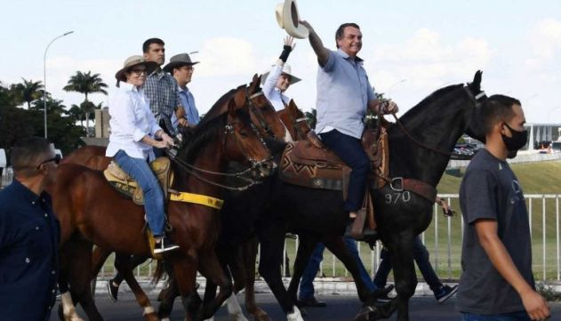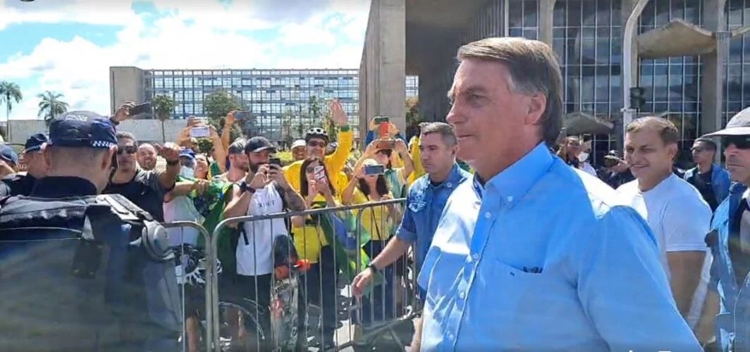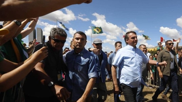 Vim cumprimentar o pessoal que está aqui na manifestação pacífica em defesa da Constituição, democracia e da liberdade. Então, parabéns a todos em Brasília, bem como todo o Brasil que hoje estarão nas ruas. Tamo junto. Brasil é nosso. Deus, pátria, família — disse Bolsonaro, no final da gravação.