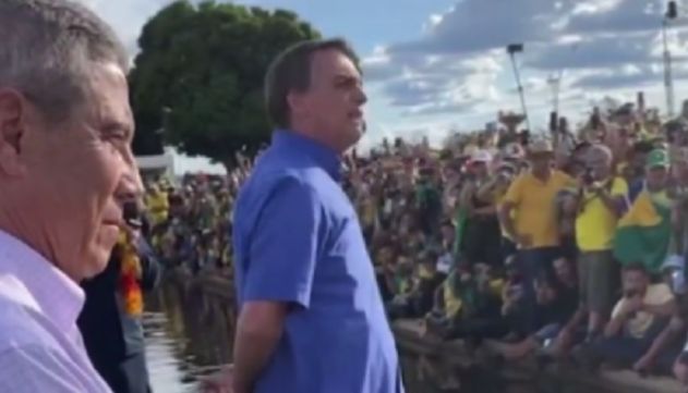 "Tenho certeza, entre as minhas funções garantidas pela Constituição, é ser o chefe supremo das Forças Armadas", prosseguiu Bolsonaro, incendiando seus apoiadores, que responderam gritando "eu autorizo!".