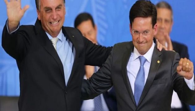 Presidente Jair Bolsonaro ao lado do ministro da Cidadania João Roma