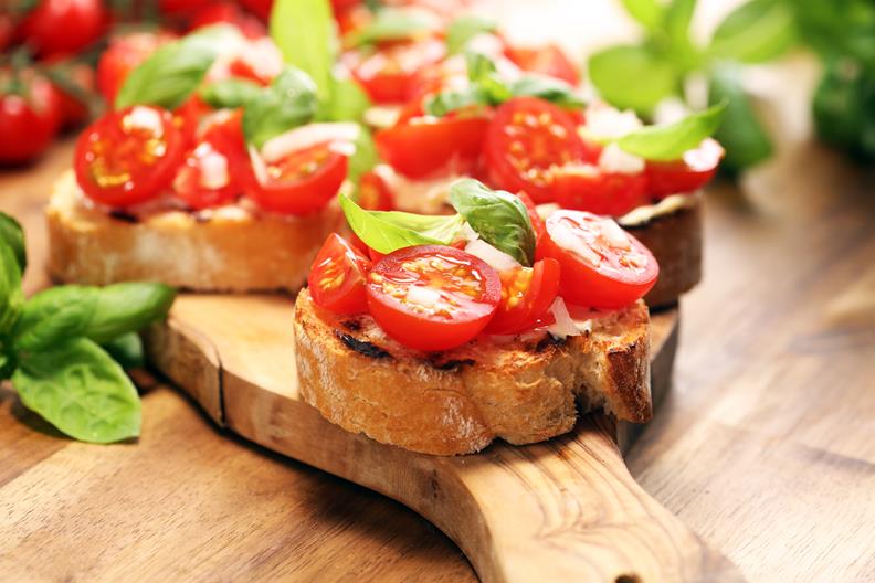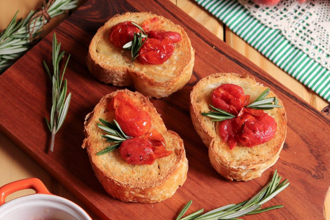 Um aperitivo prático, delicioso e barato para o seu jantar romântico é a Bruschetta. Há algumas variações desse antepasto italiano, com carne, azeitonas e diferentes recheios, mas a receita clássica é feita com tomates.