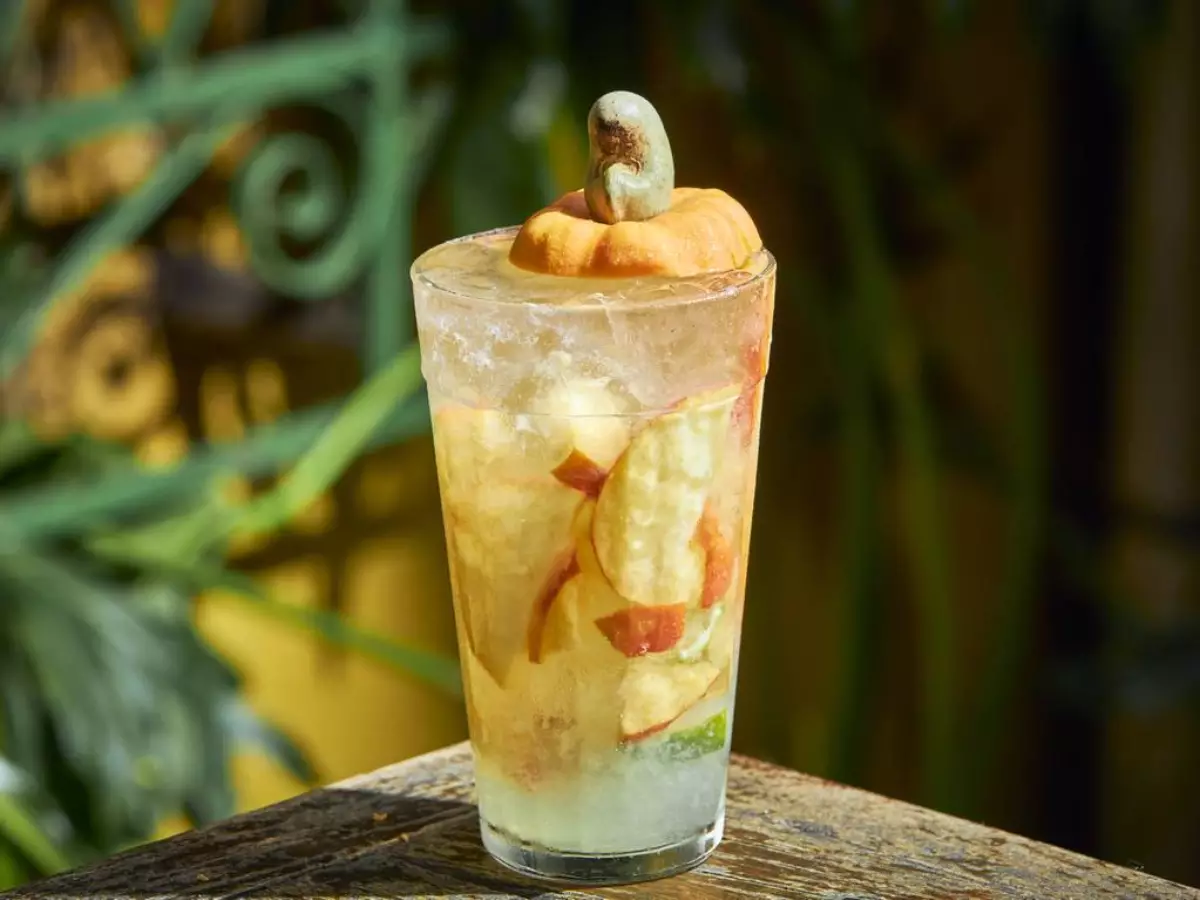 O capim-santo é uma erva de sabor puxado para notas cítricas que vai funcionar super bem para dar um toque especial na caipirinha de caju do BEC Bar. A receita utiliza o xarope da erva, mas vale colocar pedaços dela e do caju na bebida para deixá-la ainda mais bonita e aromática.