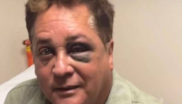 Parecia que tinha levado uma surra."Não está muito bonito, não", brincou. O sertanejo então explicou que sofreu um acidente durante uma pescaria. "Vocês acham que vida de pescador é fácil, né? Fui para o Pantanal pescar esses dias e hoje estou indo fazer show. Deu um B.O.zinho lá, sabe? Escorreguei na canoa pescando à noite e bati o olho na canoa".