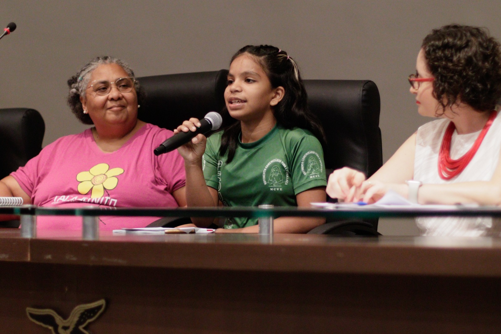 Feliz de representar os adolescentes do Amazonas, Jamili Vitória Assunção - participante do Movimento Comunitário Vida e Esperança na zona norte da capital – apresentou sua visão sobre o posicionamento dos jovens na luta pela garantia de seus direitos. “Nós como adolescentes não devemos ser desmerecidos só por sermos frágeis. Nós temos que correr para nosso direito ser realizado, se correrem por nós tudo bem, mas se outros não o fizerem devemos lutar nós mesmos por eles”, comentou a adolescente de 12 anos.