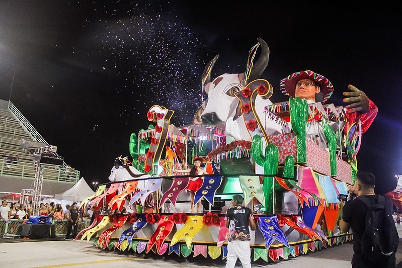 Na sequência, o Grêmio Recreativo Escola de Samba Dragões do Império levou à avenida “Corre Campo: Boi Resistência, da Arte e do Povo – Patrimônio Cultural do Brasil”, exaltando a força do boi-bumbá como expressão artística e símbolo de resistência popular. O diretor de Carnaval da escola, Naian Nascimento, destacou a importância do diálogo entre as duas manifestações culturais.