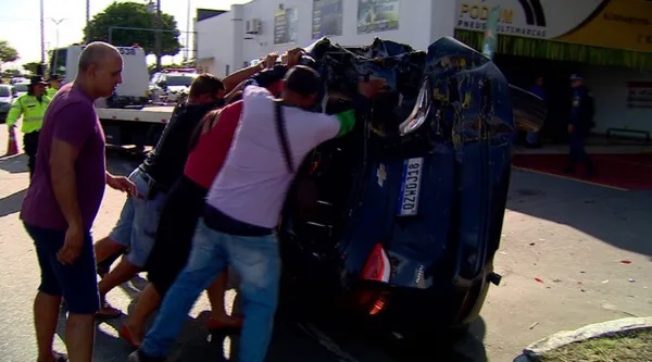 O veículo foi virado por testemunhas que estavam no local.