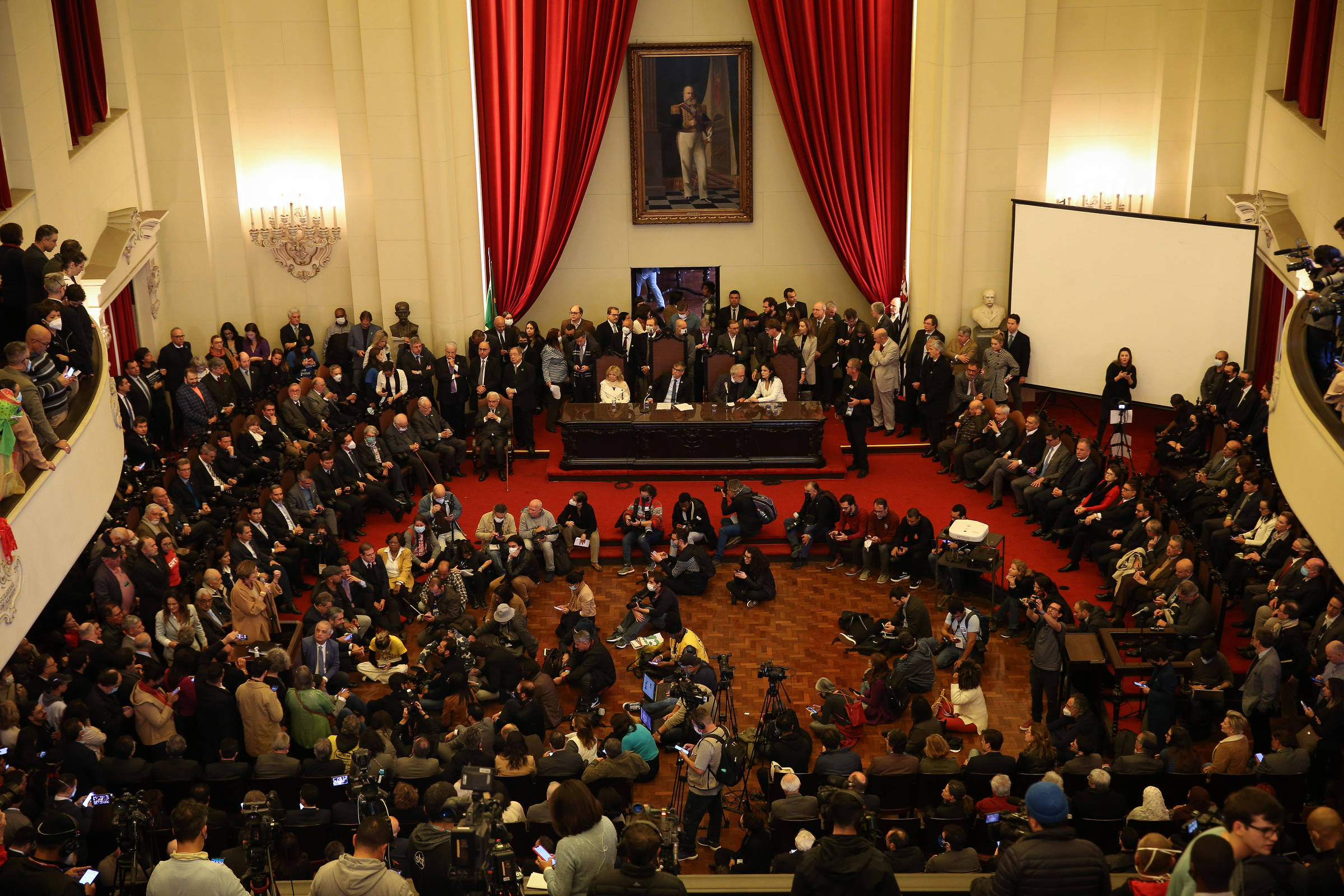 O salão nobre e o pátio da faculdade, no largo São Francisco, região central de São Paulo, foram tomados por organizadores e convidados, dos mais diferentes segmentos e correntes políticas ideológicas.