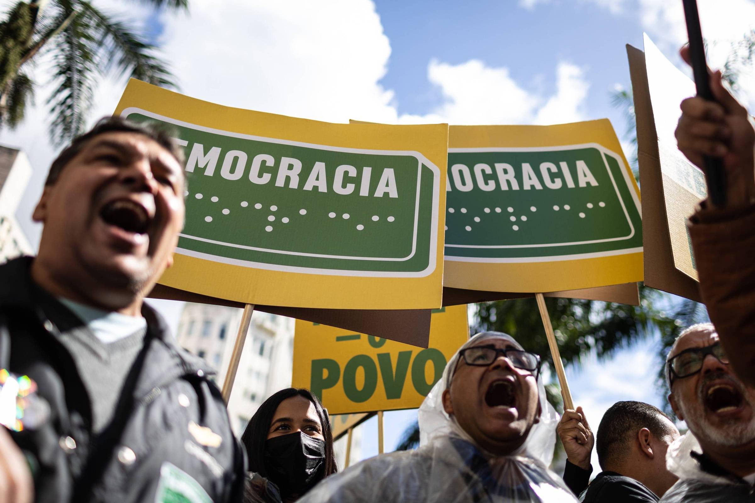 Oradores repudiaram, em tom de espanto e indignação, a necessidade de em 2022 a sociedade ter que brigar novamente por democracia e respeito à Constituição de 1988. O Poder Judiciário, que Bolsonaro frequentemente ataca, também foi defendido, assim como a Justiça Eleitoral.