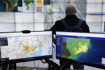 Os radares e satélites espalhados pelo país detectam uma formação de nuvens pesadas se aproximando do litoral. Um sinal de alerta se acende na sala de situação do Centro Nacional de Monitoramento e Alertas de Desastres Naturais (Cemaden), onde os dados meteorológicos aparecem quase em tempo real em uma imensa tela, do tamanho daquelas encontradas nos cinemas. Um grupo de profissionais especializados em quatro diferentes áreas (meteorologia, deslizamentos de terra, inundações e reação a desastres) analisa as informações, na sede do órgão, em São José dos Campos (SP).