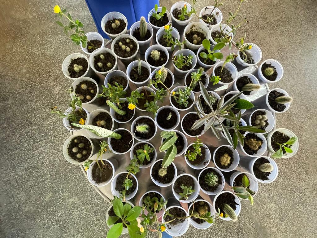 O técnico explicou que a mistura de pó de serra, esterco de animais (galinha, porco etc) e casca de frutas e verduras resulta numa excelente compostagem. Segundo Domingos Barros, o pó de serra pode ser substituído por formas de ovos ou cascas de ovos trituradas, que são misturadas com os estercos de animais e as cascas de frutas. “A adubação e a irrigação permitem o plantio de qualquer planta, seja comestível ou para jardinagem”, disse.