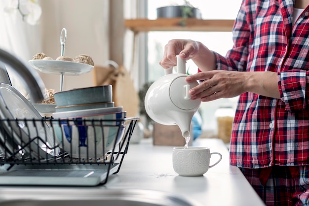 Por fim, use uma peneira para retirar e descartar as folhas de salsinha antes de saborear sua bebida quente.