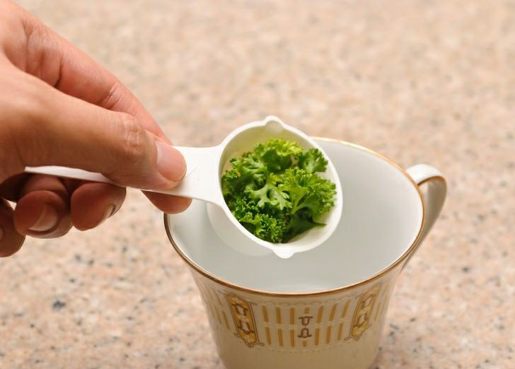 O chá de salsa pode ser consumido puro ou aromatizado com um pouco de mel, suco de limão ou açúcar.