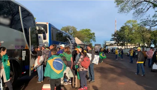Manifestantes golpistas pegam ônibus com destino a Brasília no domingo (8) em