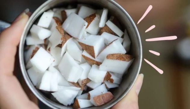 A fibra do coco ajuda a aliviar a sensação de estômago pesado e favorece o trânsito intestinal, enquanto seus minerais contribuem para manter o equilíbrio dos eletrólitos