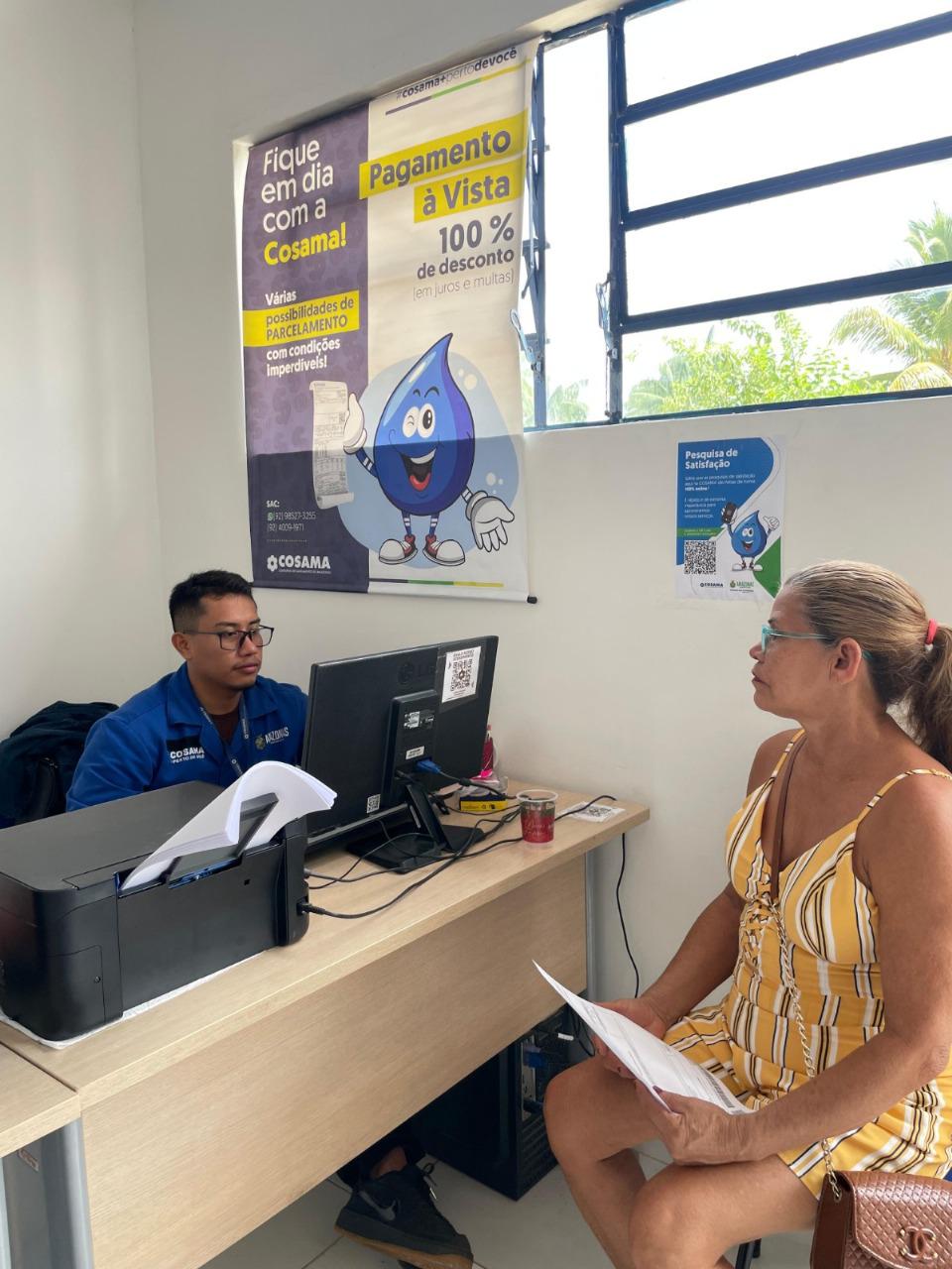 Os atendimentos ocorrem de segunda a sexta-feira, das 8h às 17h, sem necessidade de agendamento prévio. Para atendimento, é necessário apresentar documento de identidade (RG), CPF e uma fatura com número da matrícula. Para mais informações, os usuários podem entrar em contato pelo número do Atendimento ao Cliente (SAC) (92) 98488-3144, acessar o site www.cosama.am.gov.br ou utilizar o aplicativo Mais Água.