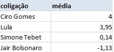 Posicionamento nas principais votações ligadas aos temas socioambientais – média coligações