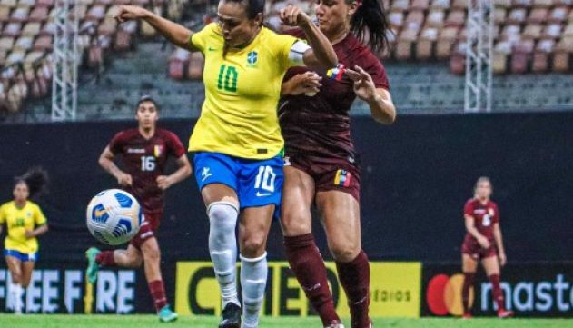 A técnica do Brasil, Pia Sundhage, levou a campo uma escalação com várias mudanças no time titular em comparação com o jogo de estreia diante da Índia. Com Marta no banco, a torcida amazonense viu a Venezuela abrir o placar logo aos 2 minutos do primeiro tempo, com gol de Villamizar.