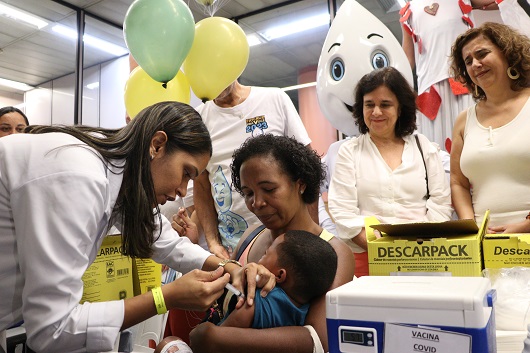 IMUNIZAÇÃO – Nós tivemos um aumento na cobertura de 13 das 16 vacinas do nosso calendário de vacinação, fruto de um grande movimento, Movimento Nacional pela Vacinação, que o presidente Lula lançou comigo ao seu lado ano passado, já num pacto com governadores e com uma atuação muito forte, queria frisar aqui, de todos os trabalhadores do Sistema Único de Saúde, na atenção básica na saúde da família, envolvendo também a retomada do Zé Gotinha, o nosso grande símbolo da vacinação.