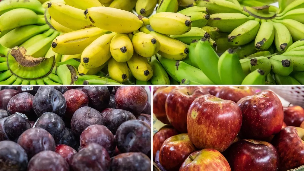 Frutas como a banana e kiwi