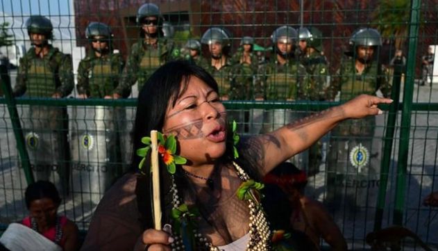 "O povo está pedindo socorro. Cadê as demarcações de terras? Estão liberando a Amazônia para petróleo, mineração, privatização dos nossos rios"