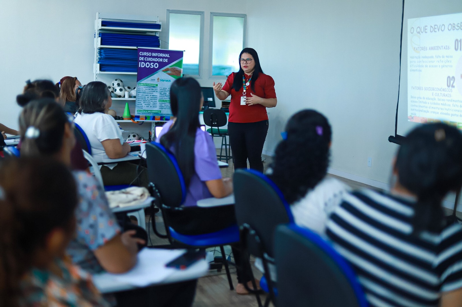 Moradores da zona rural estão participando de uma nova turma do curso de Cuidador Informal de Idoso, promovido pela Prefeitura de Manaus. Coordenada pela Secretaria Municipal de Saúde (Semsa) e conduzida por profissionais do Núcleo de Atenção à Saúde do Idoso e do Distrito de Saúde (Disa) Rural, a formação iniciou na segunda-feira, 24/6, na escola municipal Professora Neuza dos Santos Ribeiro, ao lado da Unidade de Saúde da Família (USF) Pau-Rosa, no ramal homônimo, no quilômetro 21, da rodovia BR-174 (Manaus-Boa Vista).