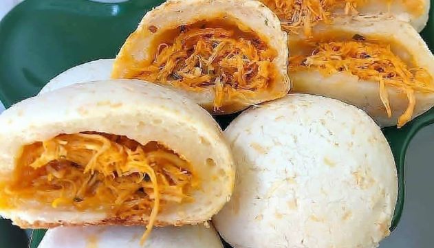 Pão de queijo recheado de peito de frango