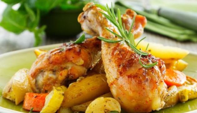 Sobrecoxa de frango assada com batata