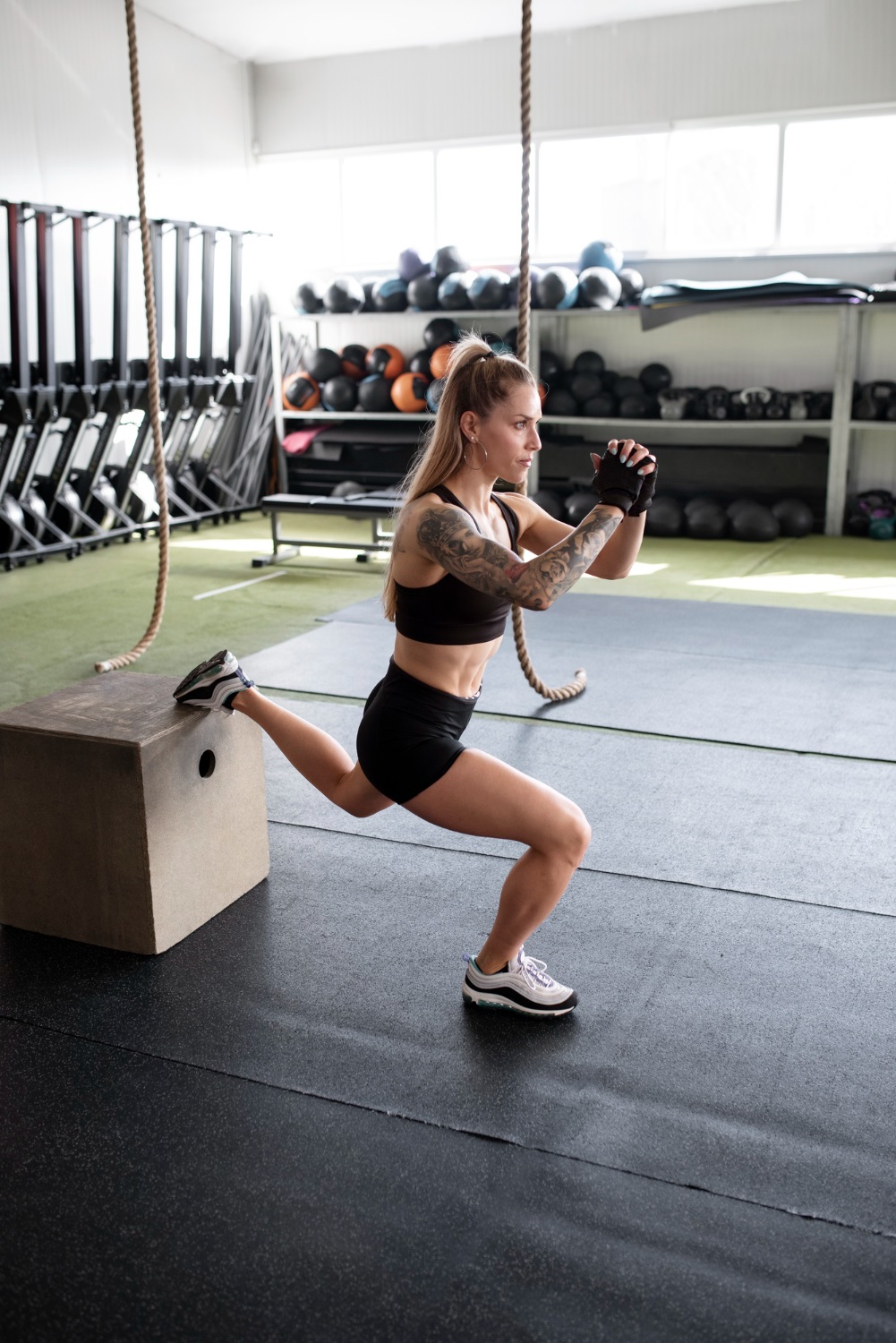 O primeiro agachamento é feito com os pés e joelhos projetados para fora. “Você pode usar uma mochila com livros, um galão de água ou outro objeto para colocar uma carga no movimento”, orienta Twin. O segundo é o agachamento búlgaro, feito com um dos pés apoiado em um banco. “É mais difícil e requer equilíbrio, mas trabalha tanto coxa quanto glúteo. Como o treino é feito apenas com o peso do corpo, o recomendável é fazer quatro séries com repetições até a falha. Não deixe de descansar de 1 a 2 minutos entre as séries”, explica.