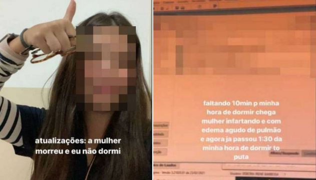 Em outra publicação, um tempo depois, ela informou a morte da paciente e voltou a reclamar que isso havia prejudicado seu sono. “Atualizações: a mulher morreu e eu não dormi”, disse.