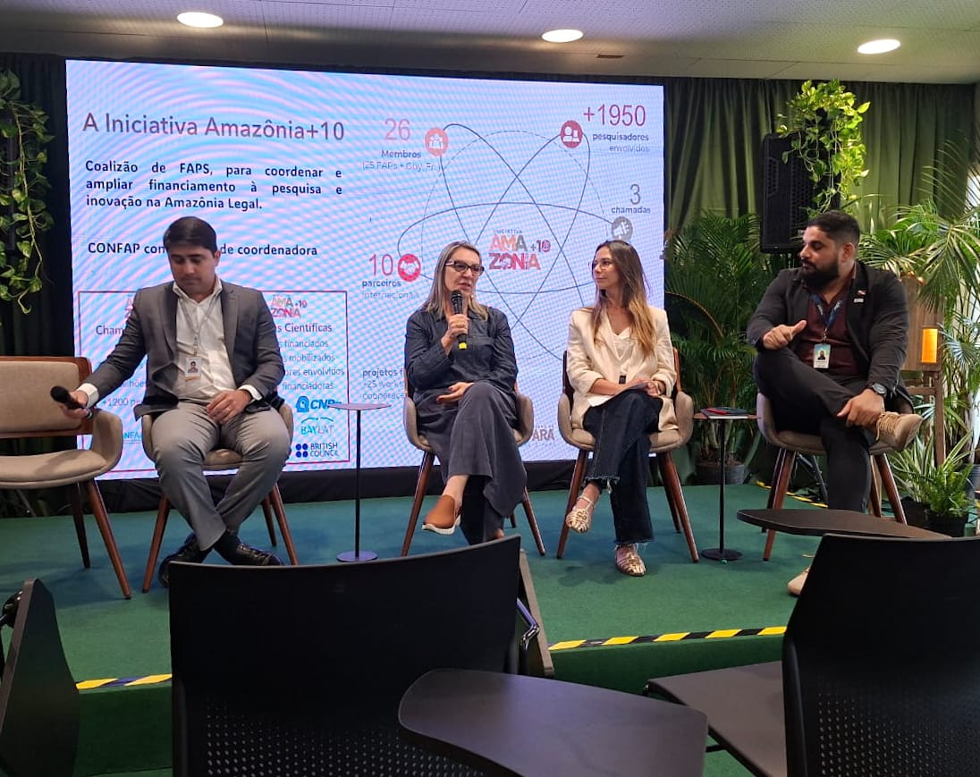 Durante o painel, um dos pontos destacados foi a construção coletiva da Iniciativa Amazônia +10, com a participação direta de pesquisadores dos Estados da Amazônia. A diretora-presidente reforçou, ainda, a importância do desenvolvimento de estudos em parceria entre diferentes pesquisadores e instituições, e o respeito à singularidade de cada Estado envolvido nas ações, dando protagonismo para aqueles que fazem parte da Amazônia Legal.