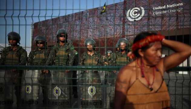 Na noite de terça-feira, 11, um grupo de indígenas e integrantes do Coletivo Juntos, ligados ao PSOL, tentou acessar a área restrita a credenciados e foram contidos pela segurança.