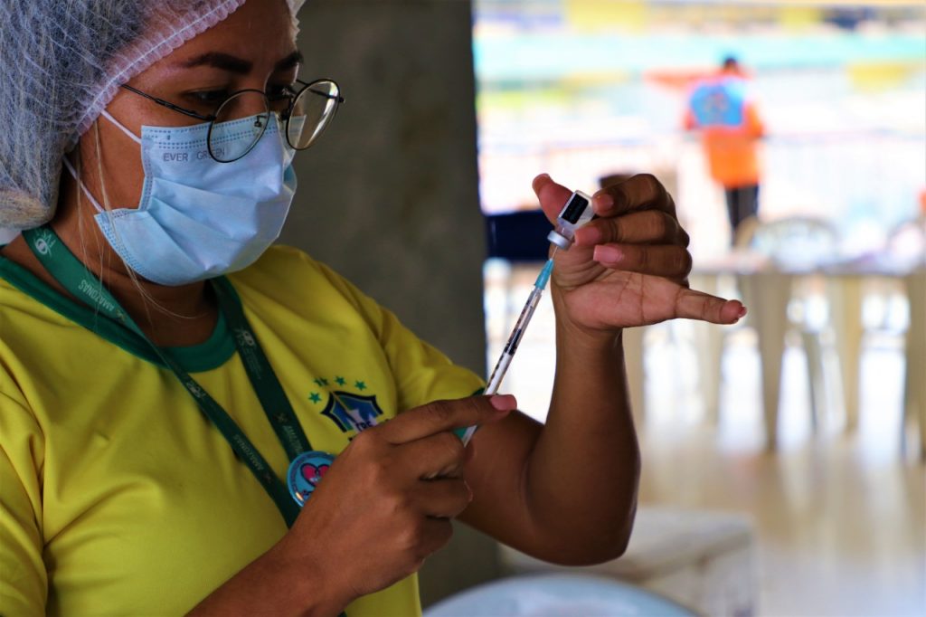 A vacinação contra a Covid-19 segue disponível aos amantes do futebol durante as transmissões dos jogos da Seleção Brasileira na Copa do Mundo do Catar, realizadas no Pódio da Arena da Amazônia, em Manaus. A Fundação de Vigilância em Saúde do Amazonas – Drª Rosemary Costa Pinto (FVS-RCP), vinculada à Secretaria de Estado de Saúde (SES-AM), enfatiza a importância da população atualizar o esquema vacinal contra a doença.