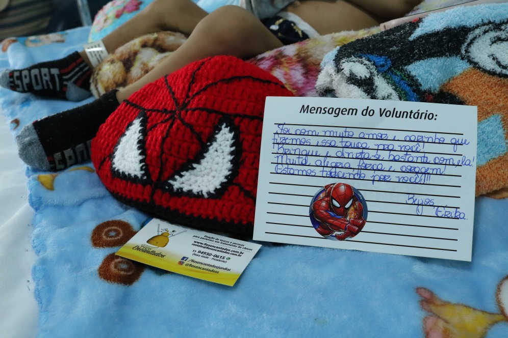 O projeto é de Jundiaí (SP) e confecciona toucas e perucas lúdicas de heróis e princesas para crianças e adolescentes em tratamento de câncer, além de almofadas de coração, lenços e turbantes. Desde 2018, já foram realizadas ações em hospitais e casas de apoio de 26 estados do Brasil. A Fundação Cecon e o Lar das Marias, uma casa de apoio para mulheres em tratamento oncológico em Manaus, receberam o total de 85 itens, entre toucas, perucas, lenços, turbantes e almofadas de coração.