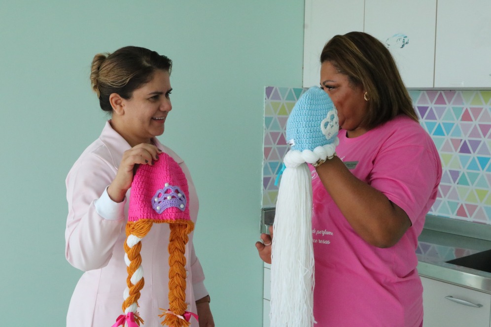 As crianças em tratamento contra o câncer na Fundação Centro de Controle de Oncologia do Estado do Amazonas (FCecon), unidade vinculada à Secretaria de Estado de Saúde (SES-AM), tiveram um dia animado de heróis e princesas nesta quarta-feira, 18/09. Os pacientes receberam toucas lúdicas doadas pela Associação Fios Encantados.