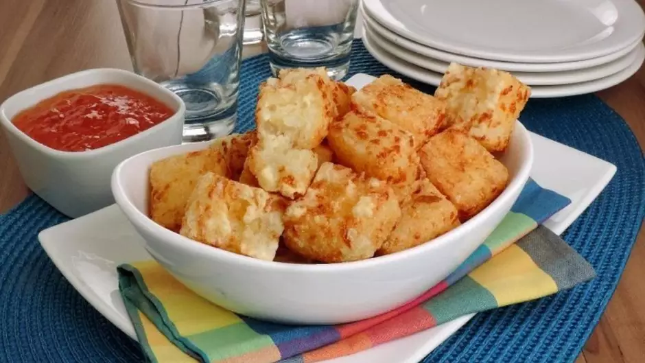 Para fazer esse delicioso aperitivo de dadinho de tapioca, basta misturar os ingredientes, levar à geladeira e depois fritar. É muito fácil!