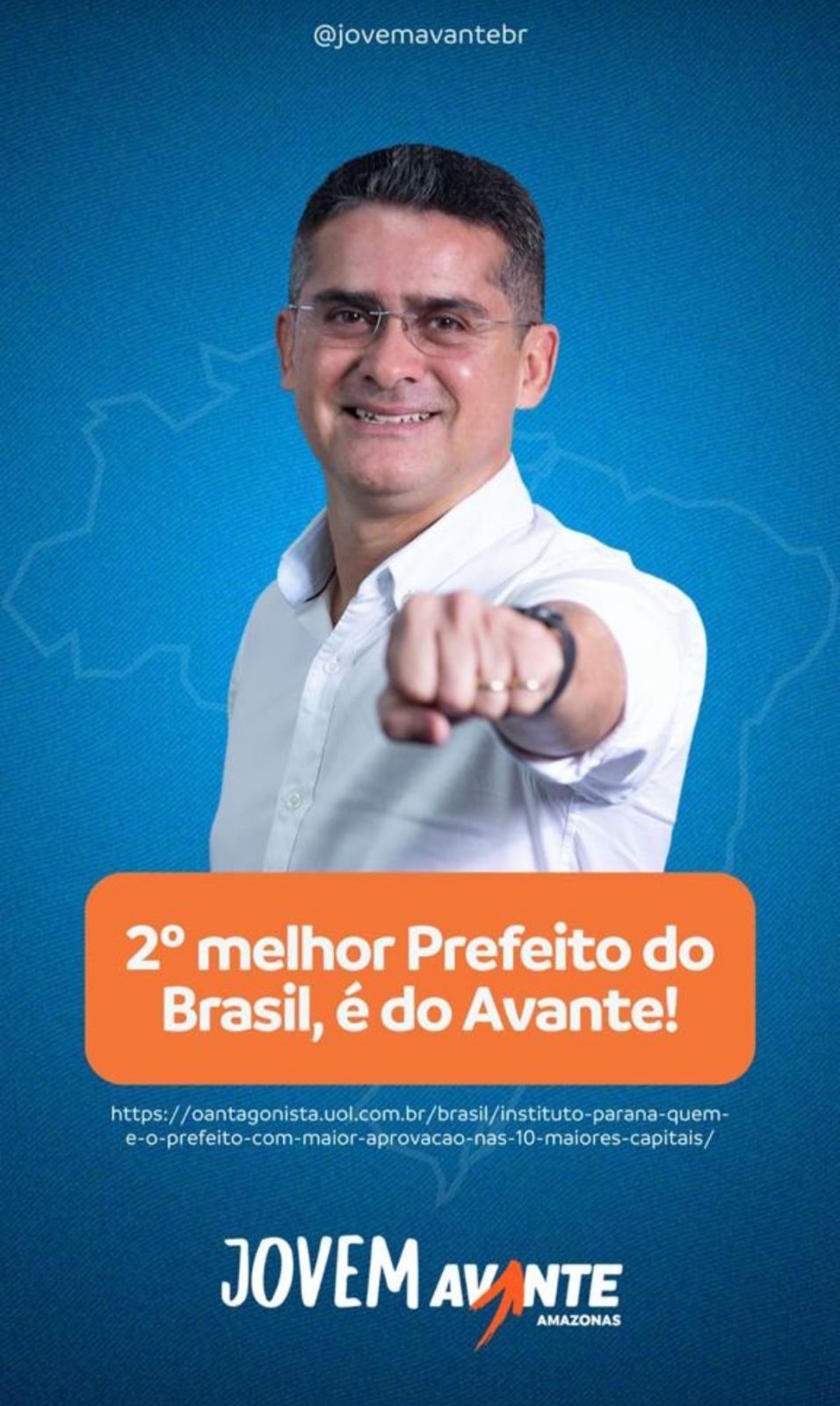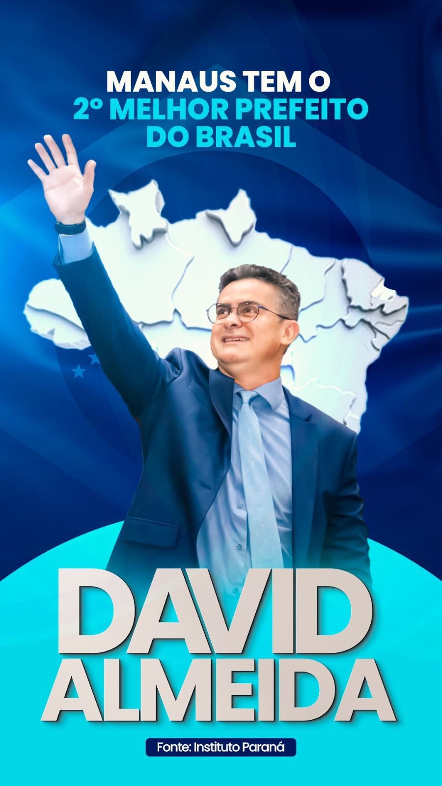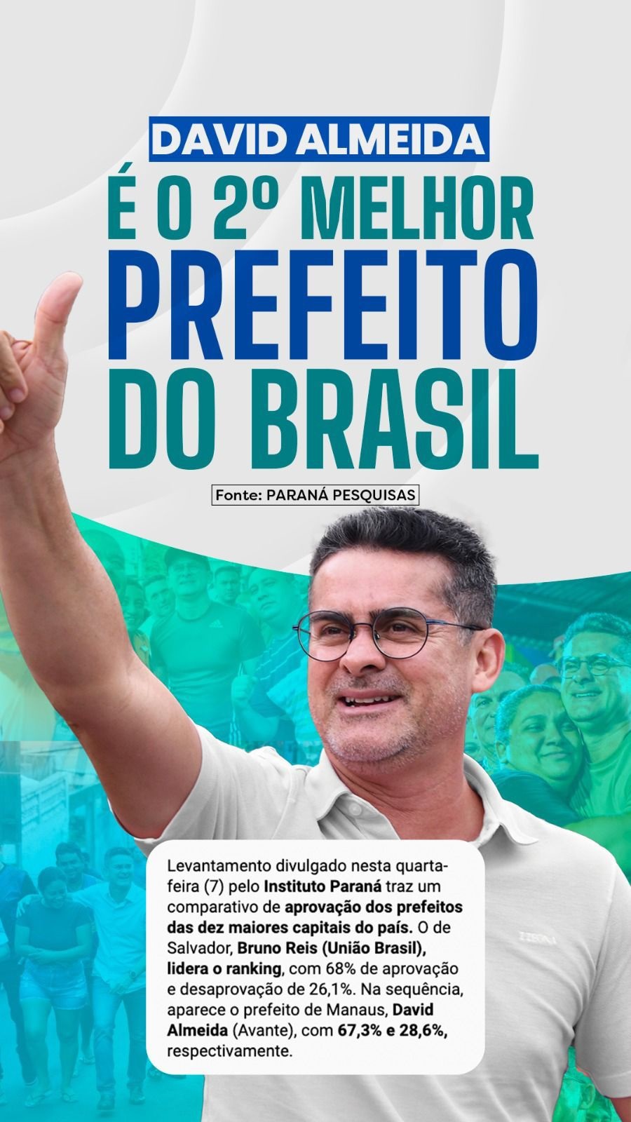 David Almeida é o prefeito de capital com a segunda maior avaliação do Brasil, alcançando a marca de 67,3% de aprovação. É o que revela levantamento divulgado na quarta-feira, 7 de junho, pelo Instituto Paraná.