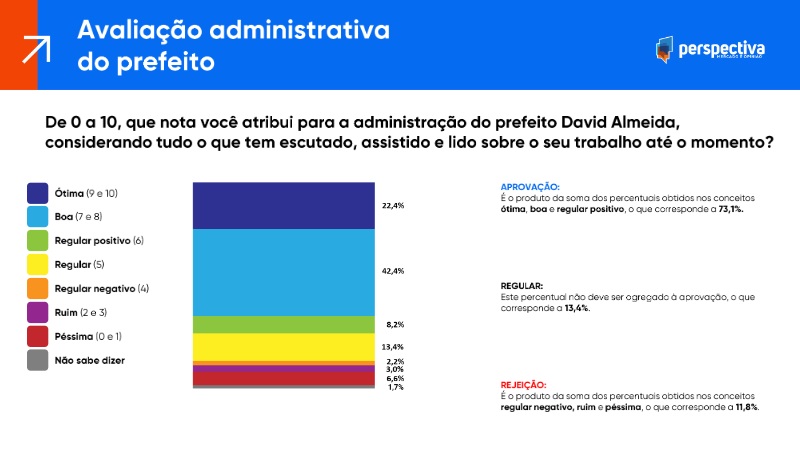 A gestão do prefeito David Almeida tem 73,1% de aprovação entre os manauaras.