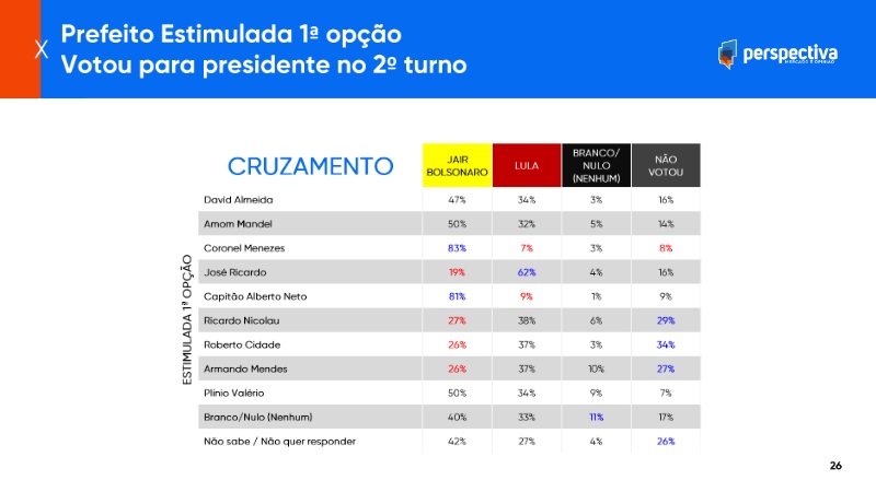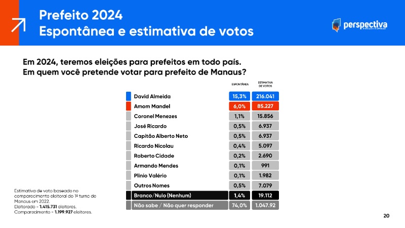A sondagem da Perspectiva ouviu 1,5 mil eleitores de Manaus, entre os dias 28 e 31 de março.