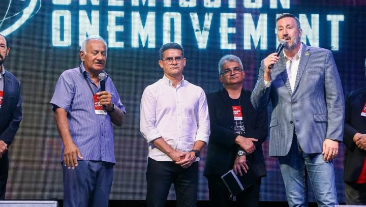Acompanhado pelo vereador e vice-presidente da Câmara Municipal de Manaus (CMM), Wallace Oliveira, o prefeito David Almeida foi homenageado com um troféu pelo pastor Francisco Montefusco, presidente da igreja no país, e destacou a importância de eventos para Manaus.