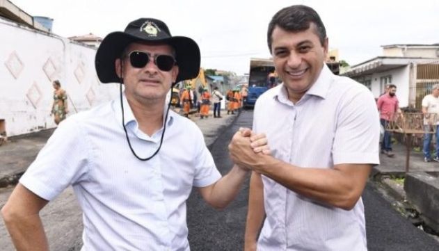 Wilson Lima e David Almeida, durante acompanhamento das obras de recuperação das ruas de Manaus