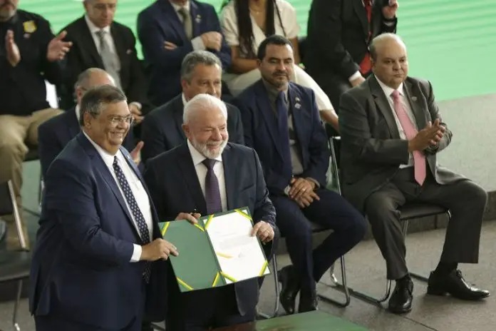 O presidente da República, Luiz Inácio Lula da Silva, assinou, na sexta-feira 21/7, o decreto sobre o controle responsável de armas. A cerimônia, no Palácio do Planalto, fez parte da solenidade da assinatura de atos relativos à Segurança Pública, no âmbito do Programa de Ação na Segurança (PAS), lançado pelo Governo Federal com a presença do ministro da Justiça e Segurança Pública, Flávio Dino. O secretário Nacional de Segurança Pública, Tadeu Alencar, também participou do momento.