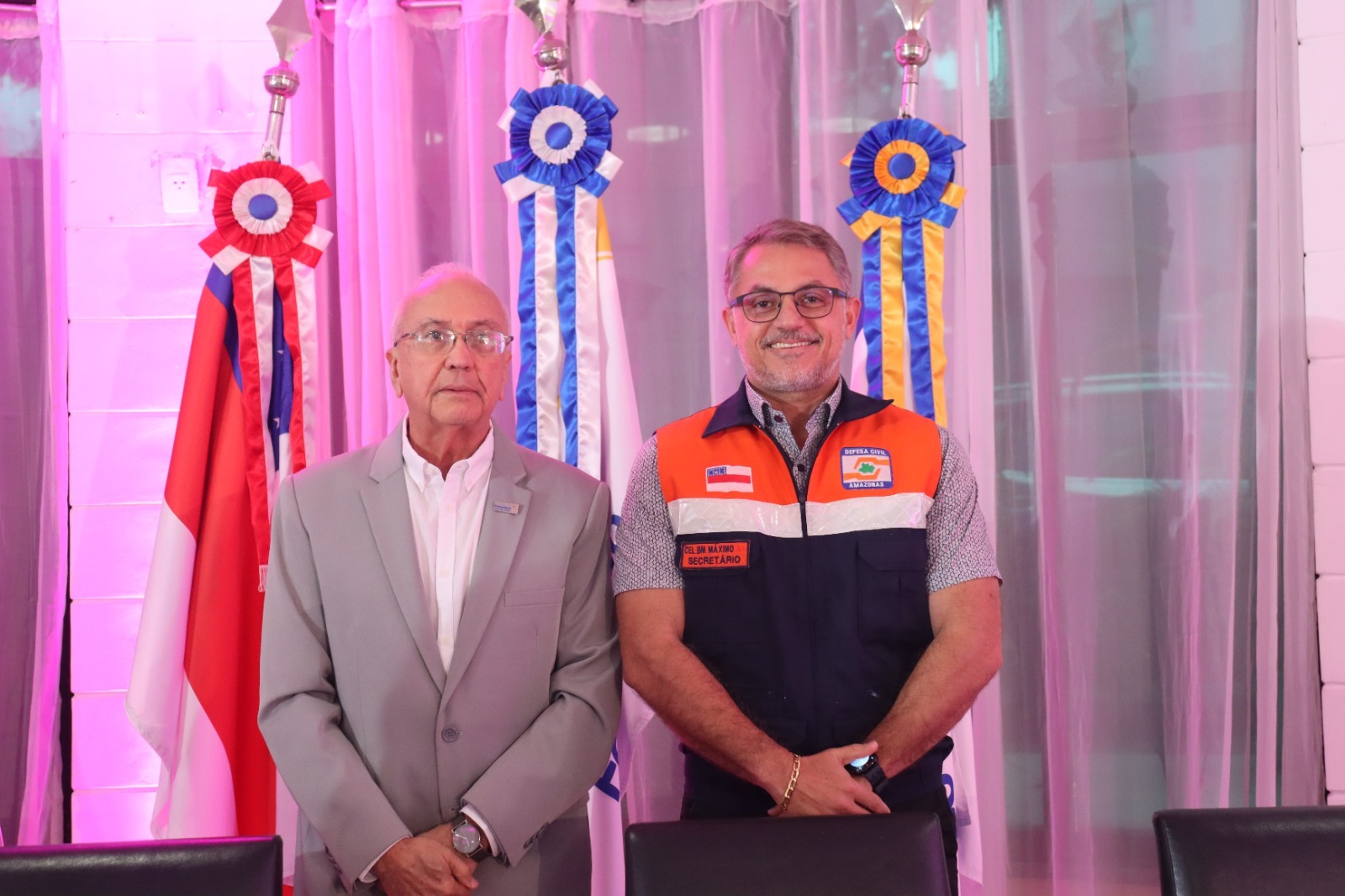 Presidente da Fecomércio-AM, Aderson Frota, e o secretário da Defesa Civil do Amazonas, Francisco Máximo