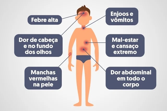 Sintomas comuns entre as doenças: febre, dores no corpo e de cabeça, cansaço e mal-estar.
