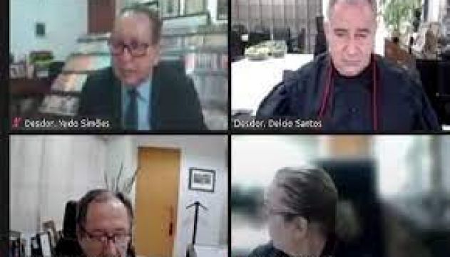 Após a queda da estante falsa, o desembargador se retira da videoconferência para recolocar o fundo na sua devida posição, deixando a cadeira vaga por cerca de 3 minutos.