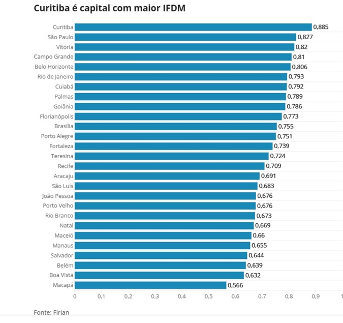 • A escala vai de 0 a 1, sendo que quanto mais próximo de 1, maior o desenvolvimento.